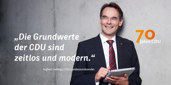"Für die CDU Deutschlands und damit auch für CDU Schleswig-Holstein gilt: Wir sind eine große und erfolgreiche Volkspartei der Mitte. Und das wollen wir auch bleiben!", bekräftigte der CDU-Landesvorsitzende Ingbert Liebing anlässlich des Beginns der "Woche der CDU" zum 70. Geburtstag der CDU Deutschlands.